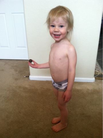 so then I dragged myself out of bed to accompany her to the bathroom. Sure enough, she just sat right on the potty and did her thing.