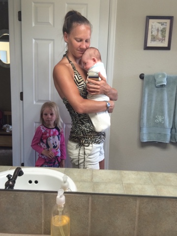 I had to take a swaddle picture with elizabeth. I used to take pictures like this with Abigail in our Stanford apartment so I though it was great that Abigail photobombed this one. Man, they grow up fast!